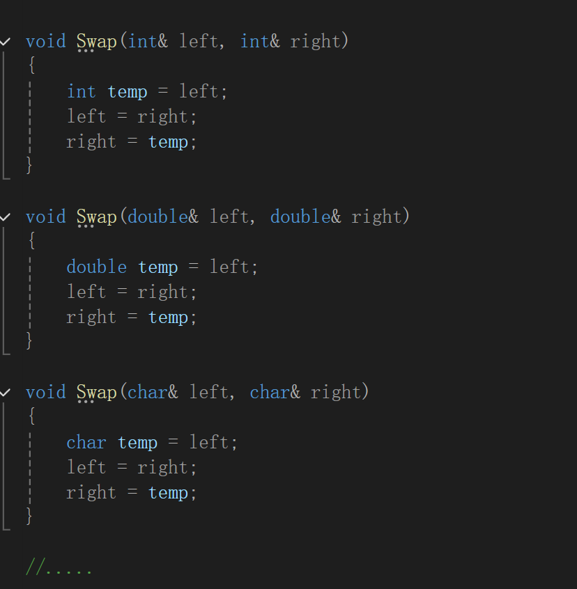 1. 重载的函数仅仅是类型不同,代码复用率比较低,只要有新类型出现时,就需要用户自己增加对应的函数