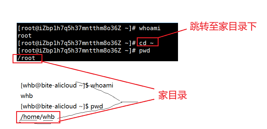任何一个linux用户,用特定的用户名登陆系统时,默认路径在家目录下
