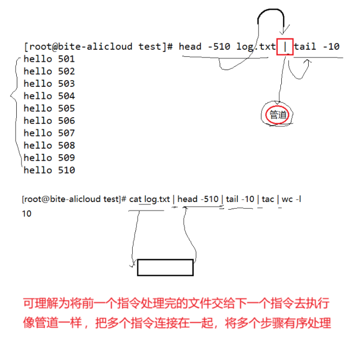 head 与 tail 就像它的名字⼀样的浅显易懂,它是⽤来显⽰开头或结尾某个数量的⽂字区块,head ⽤来显⽰档案的开头⾄标准输出中,⽽ tail 想当然尔就是看档案的结尾。