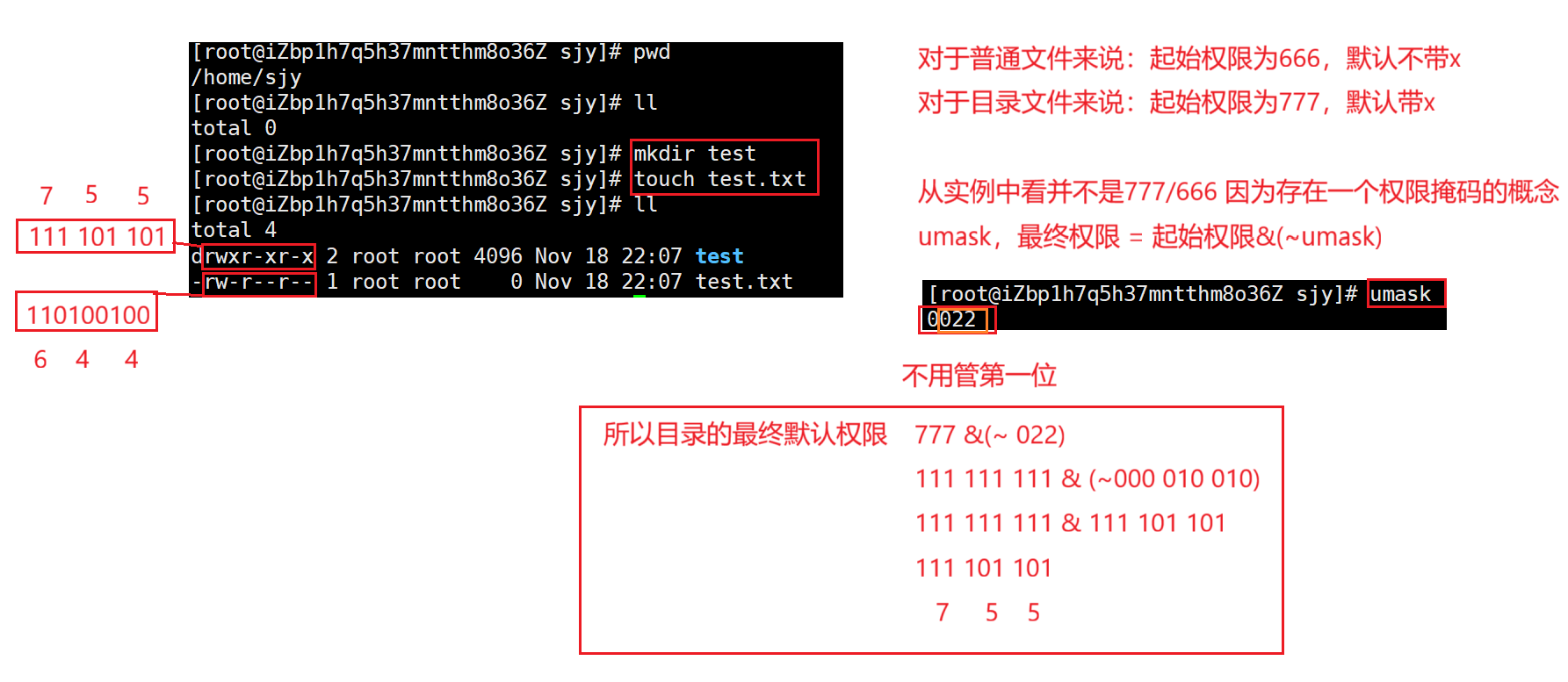 umask 目的是什么:希望凡是在umask中出现的权限,都不应该在最终权限中出现