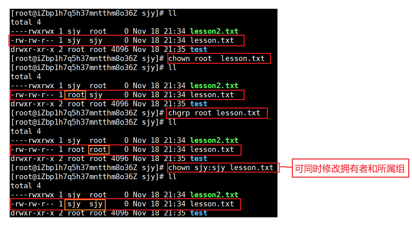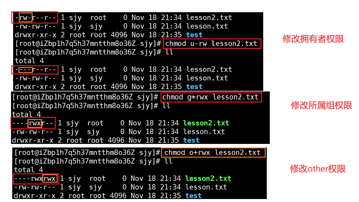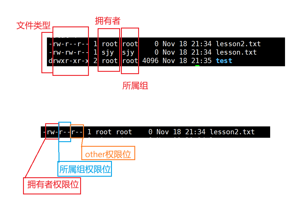 3.确认权限信息的时候,centos下用户角色只确认一次,顺序是:拥有者,所属组,other