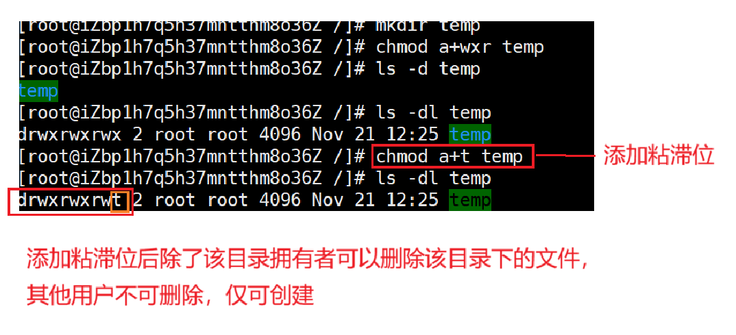 如果一个目录需要共享使用但不想让别人删除自己在该目录下创建的文件可以为该目录添加粘滞位