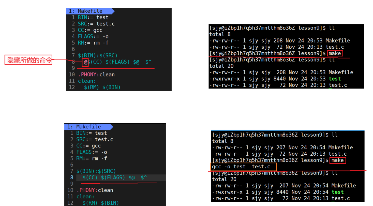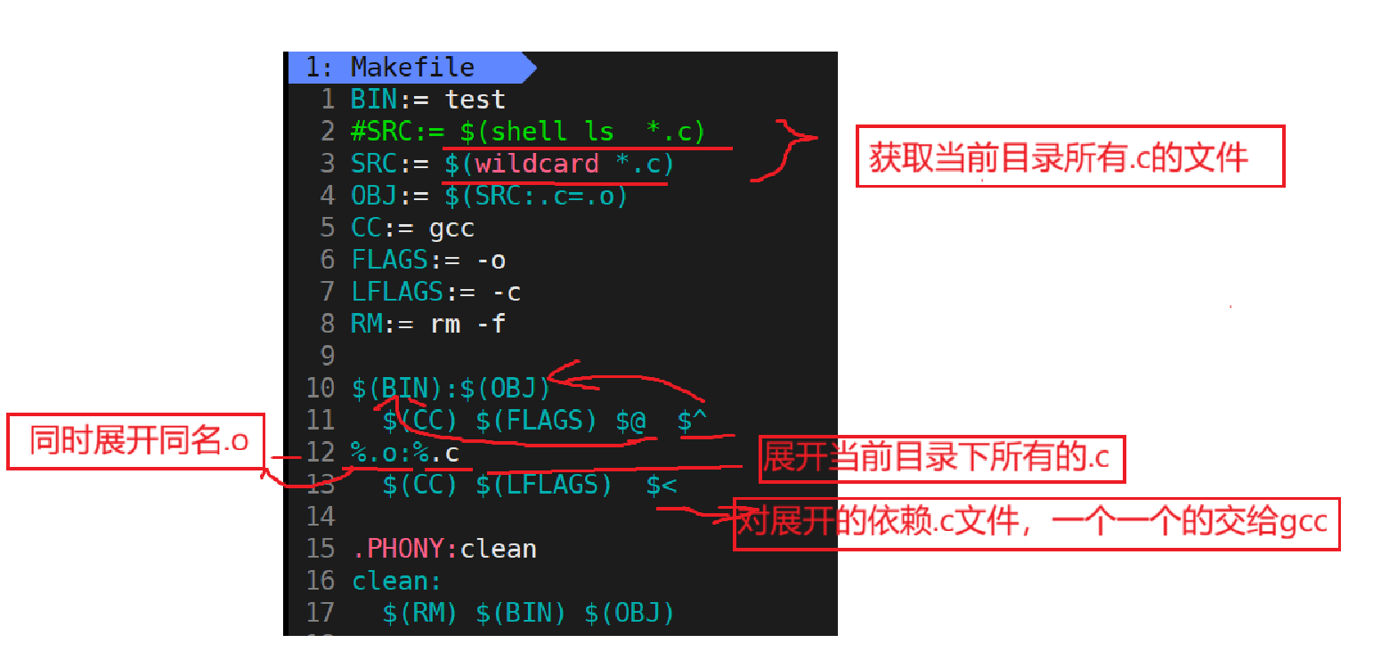 个命令可⻅,makefile都成为了⼀种在⼯程⽅⾯的编译⽅法。