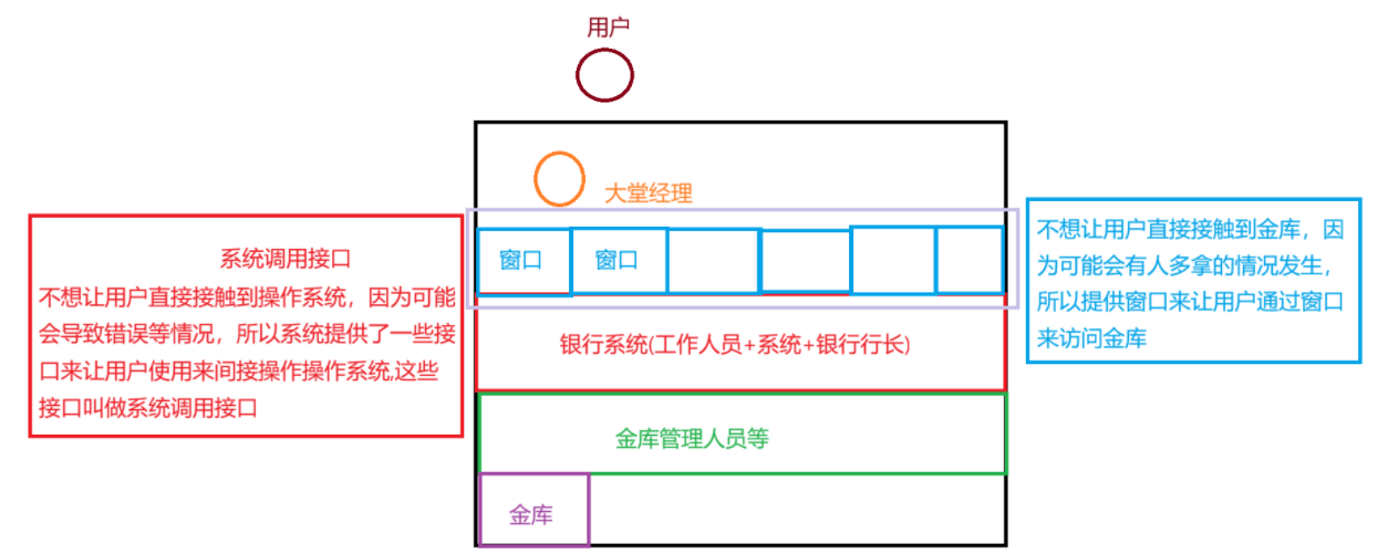 举例:银行,银行不相信任何用户,但是要向用户提供理财产品或者存取钱的服务,于是开设了办理窗口,让工作人员在金库里存取钱