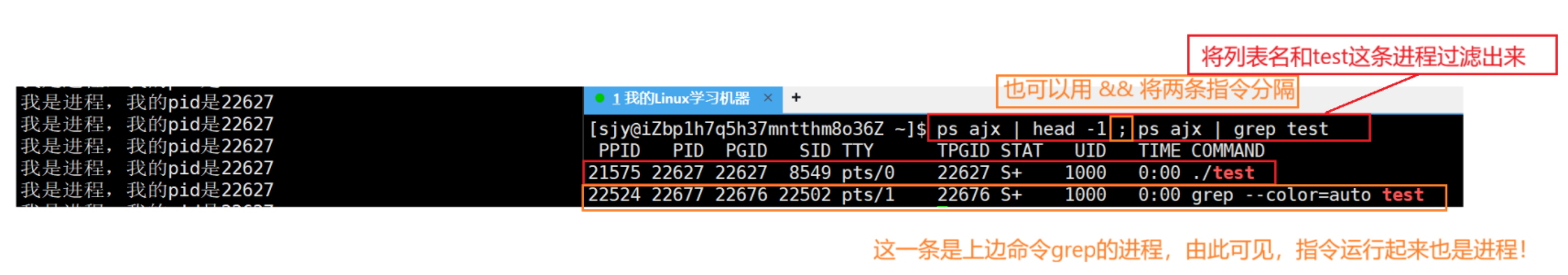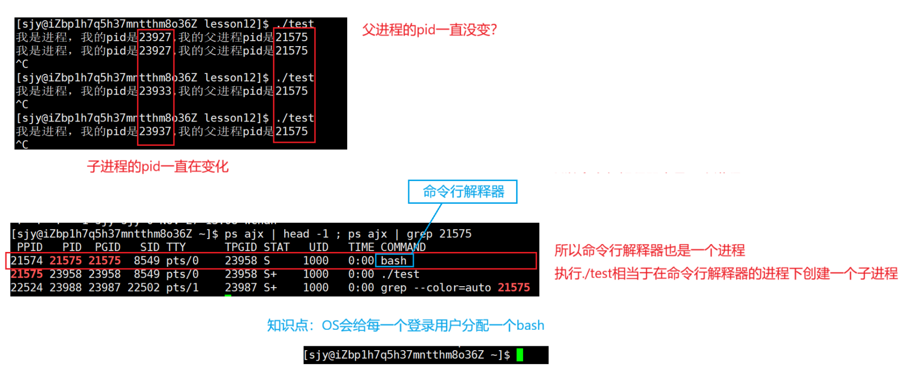 我们可以通过getpid系统调用函数获得进程的pid,getppid获得父进程的pid(注意是在在自己的程序里调用函数,不是在命令行调用)