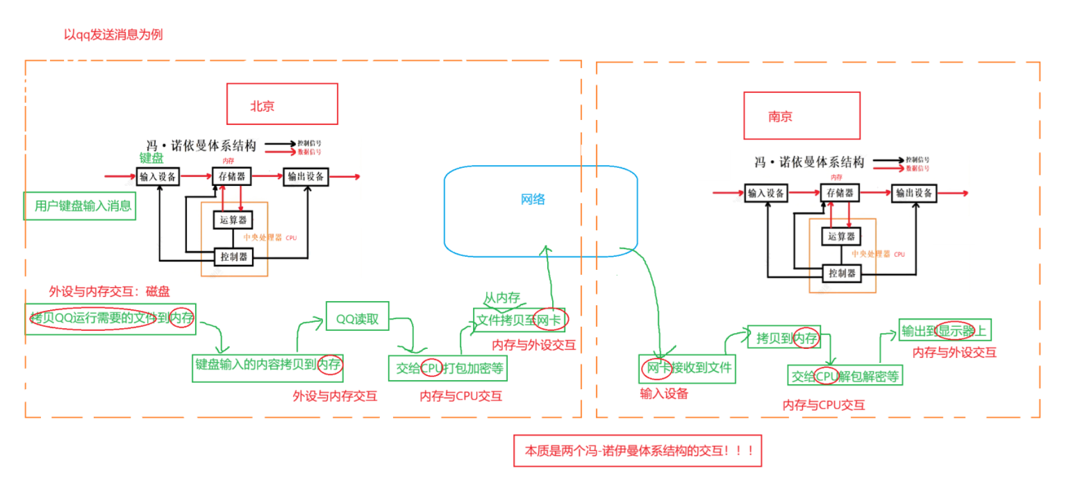 将以前理解的的计算机图标替换成两个冯-诺伊曼体系结构进行交互