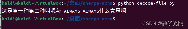 也可以复制下面脚本内容到decode-file.py(该文件只有在sherpa-ncnn下可以使用)