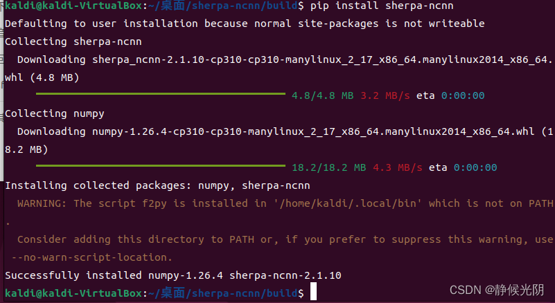 使用sherpa-ncnn前,安装并编译过kaldi,所以在编译sherpa-ncnn前只安装了cmake