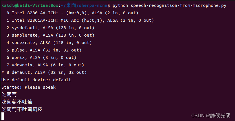 执行speech-recognition-from-microphone.py脚本,命令如下: