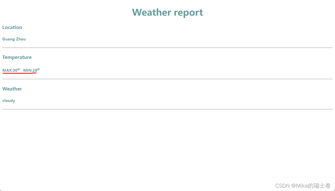 <h5 align="left">MAX:30<sup>o</sup> MIN:26<sup>o</sup></h5>