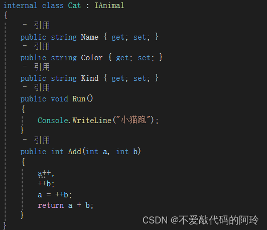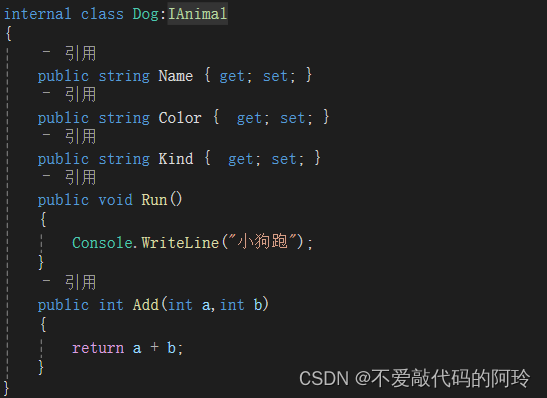2 定义一个子类继承 IAnimal 父类 就是一个接口的过程