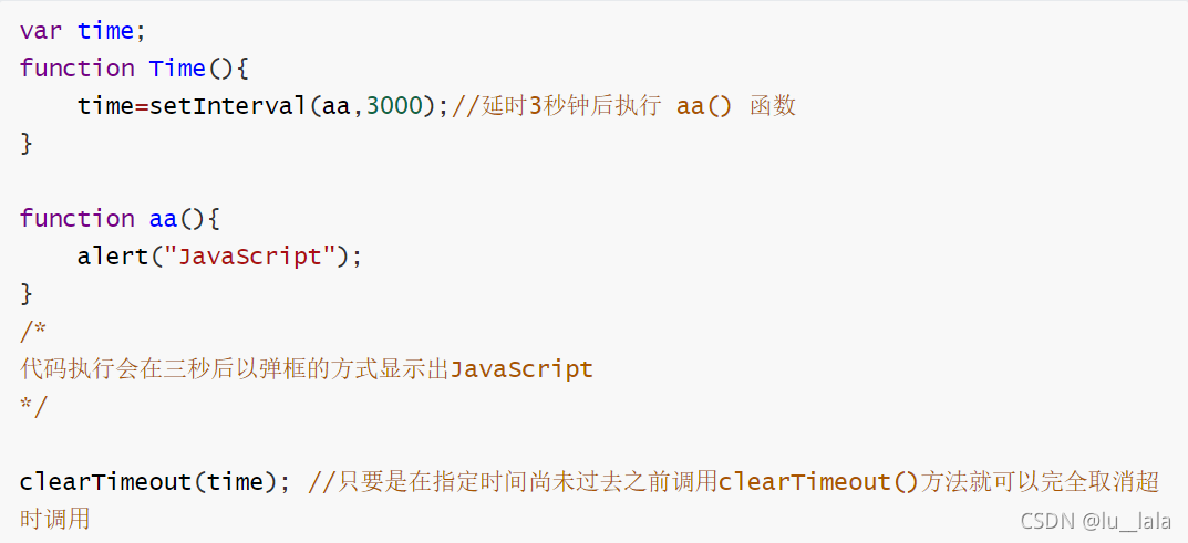 超时调用需要使用window对象的setTimeout()方法,接收两个参数 : 要执行的代码或函数和以毫秒表示的时间
