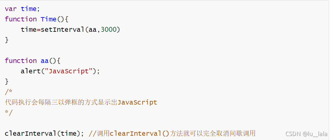 间歇调用与超时调用类似,只不过它会按照指定时间间隔重复执行代码,直至间歇调用被取消或者页面被关闭。设置间歇调用的方法是setInterval(),它接收的参数与超时调用相同。