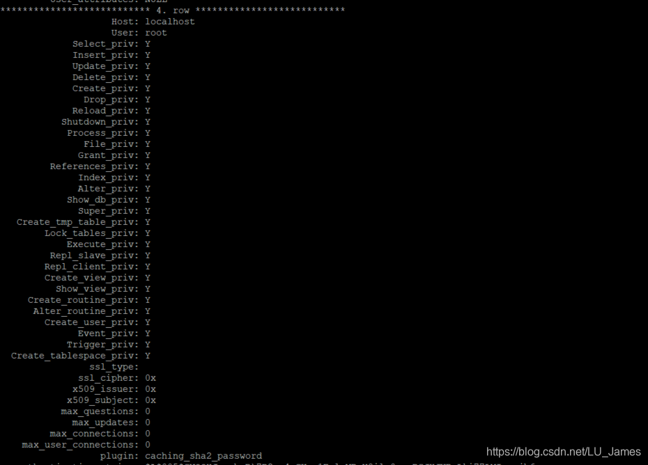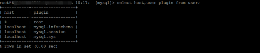 - 登录MySQL 检查mysql.user表里用户权限。发现root账户host 值为localhost