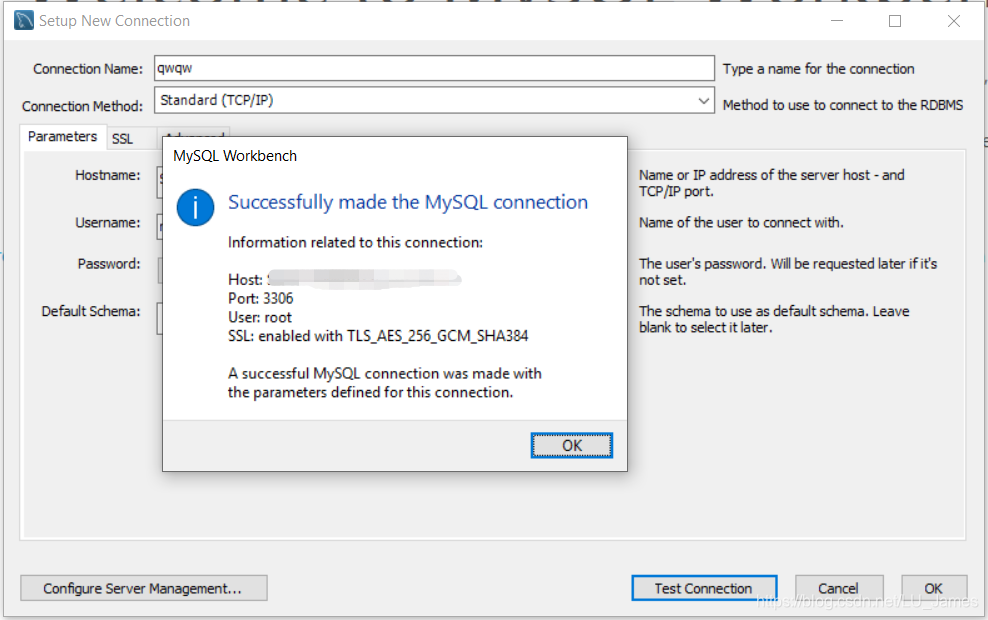 在Server安装MySQL8.0完毕后,在Client用Workbench访问发现连不上,提示: