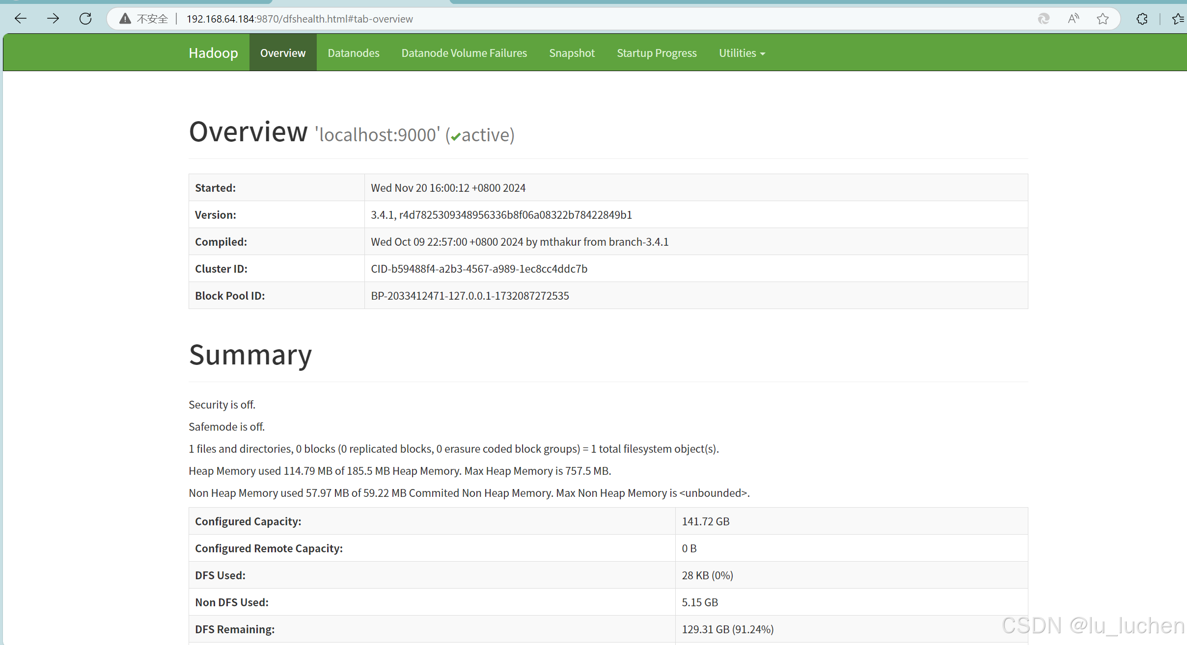 宿主机输入虚拟机ip:9870