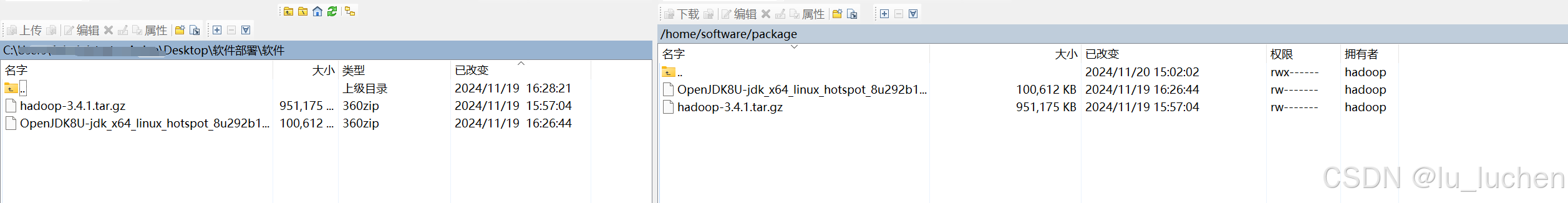 chown hadoop:hadoop /home/software/*