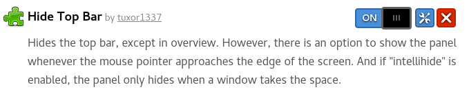 GNOME的各个部分都是"out-of-the-box"就可以定制的,只有GNOME Shell不行。这个插件可以开启定制GNOME Shell的功能。GNOME的外壳指的就是GNOME本身跟用户打交道的那些地方。简单地说(当然不一定严谨,只是为了方便理解),除了窗口以外的部分,都可以视为GNOME Shell的管辖范围。