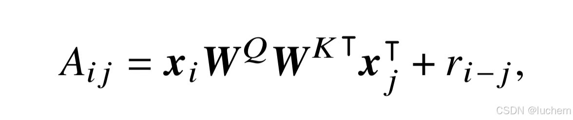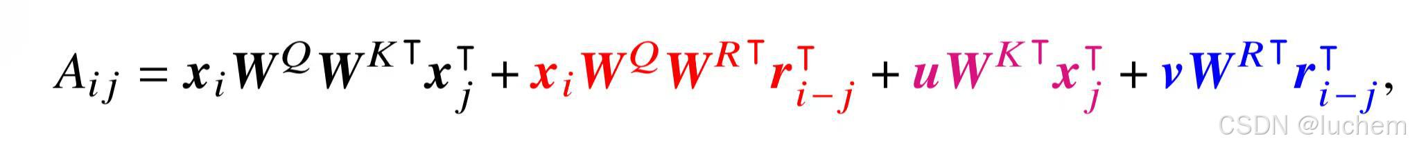 - 而Transformer-XL 对上述注意力值进行了改写,使用相对位置信息代替绝对位置信息: