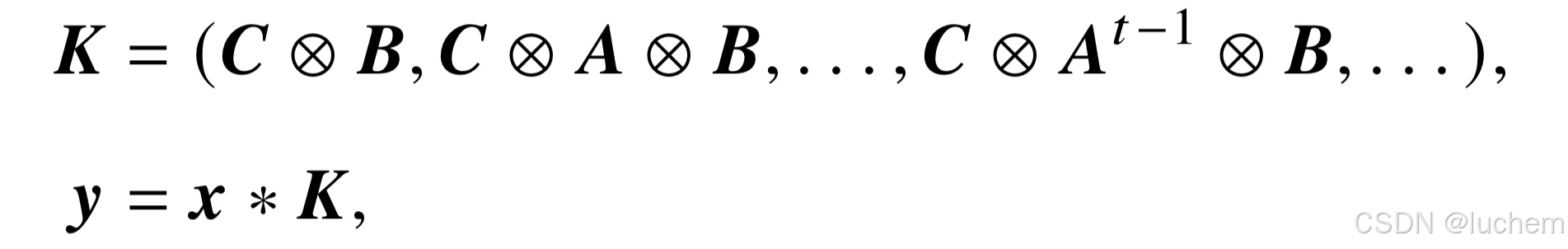 根据卷积计算的定义,对输出yt的计算可以看作是对输入的卷积,其中卷积核为K。这一计算可以表示为: