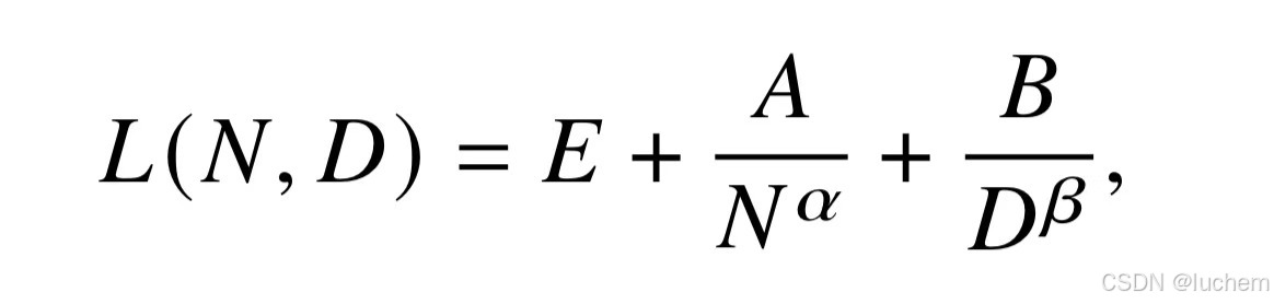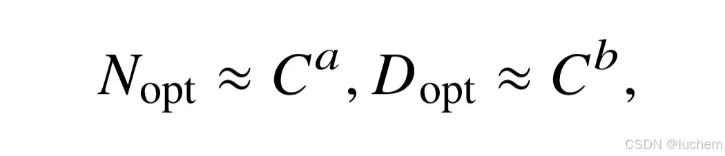 Hoffmann 等人(DeepMind 团队)于2022 年提出了一种可选的扩展法则,旨在指导大语言模型充分利用给定的算力资源进行优化训练。研究人员拟合得到了另一种关于模型性能的幂律关系: