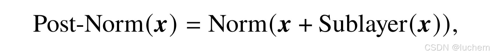 - Post-Norm:Post-Norm 是在原始Transformer 模型中所使用的一种归一化技术。其中,归一化模块被放置于残差计算之后。其计算公式如下: