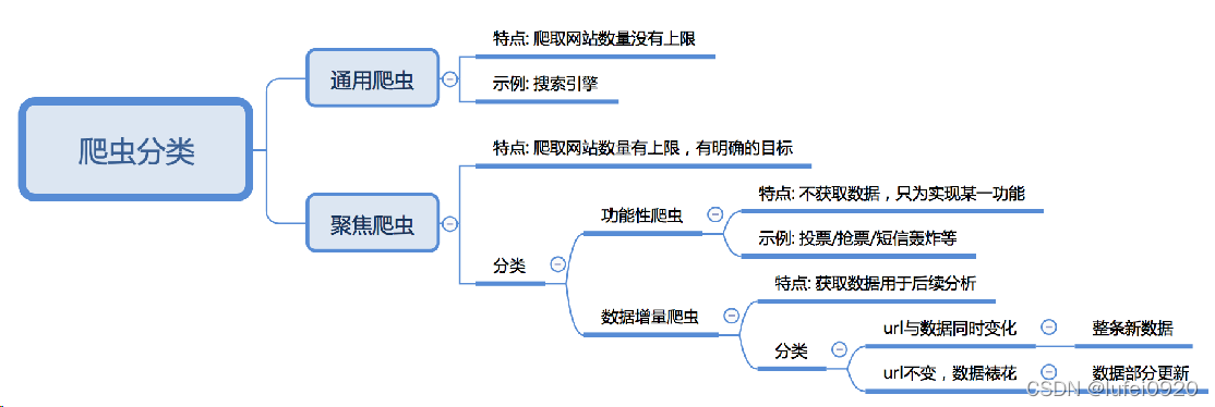 - 聚焦爬虫,如12306抢票,或专门抓取某一个(某一类)网站数据