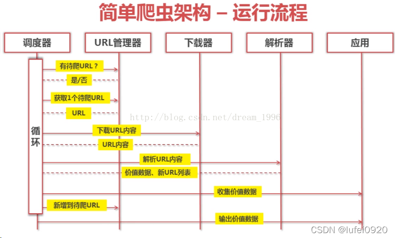 主调度程序主要是管理上图中其余几个模块的,然后循环的执行这几个模块进行爬取信息,直到条件达到(爬取够一定数量)跳出循环。