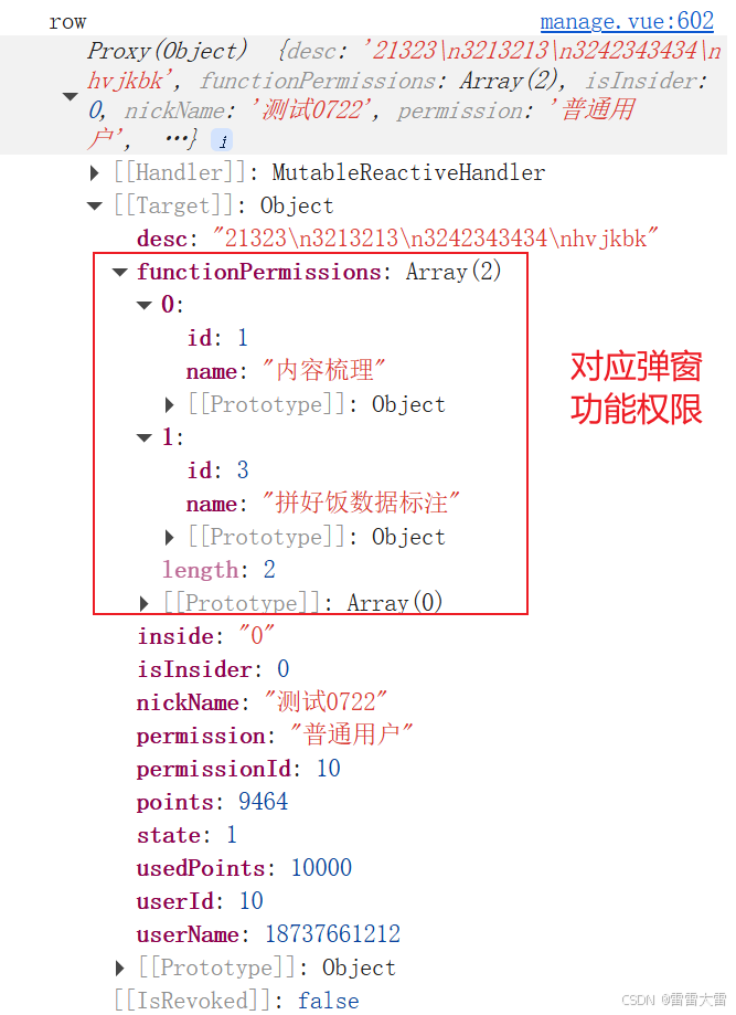 );//根据row打印的数据会发现后端传递的functionPermissions是一个数组的形式,然而我们需要获取