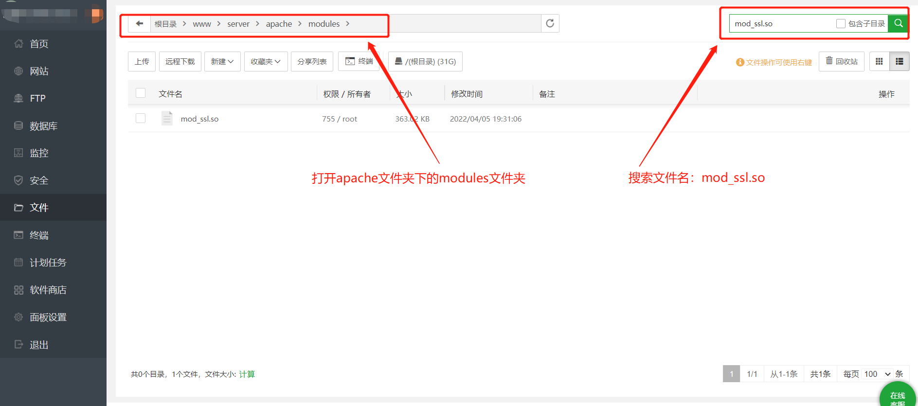 检查方法:查看是否在 modules (/apache/modules/)下存在mod_ssl.so