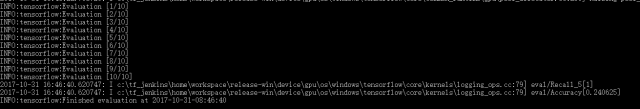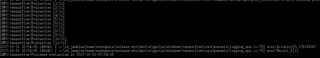 短暂的训练之后,我们就可以测试下验证集上的准确率了,执行eval_image_classifier.py文件: