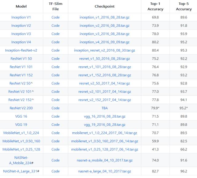 具体内容可以查看:https://github.com/tensorflow/models/tree/master/research/slim