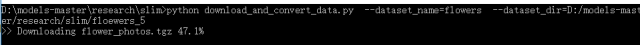python download_and_convert_data.py --dataset_name=flowers --dataset_dir=D:/models-master/research/slim/flowers_5