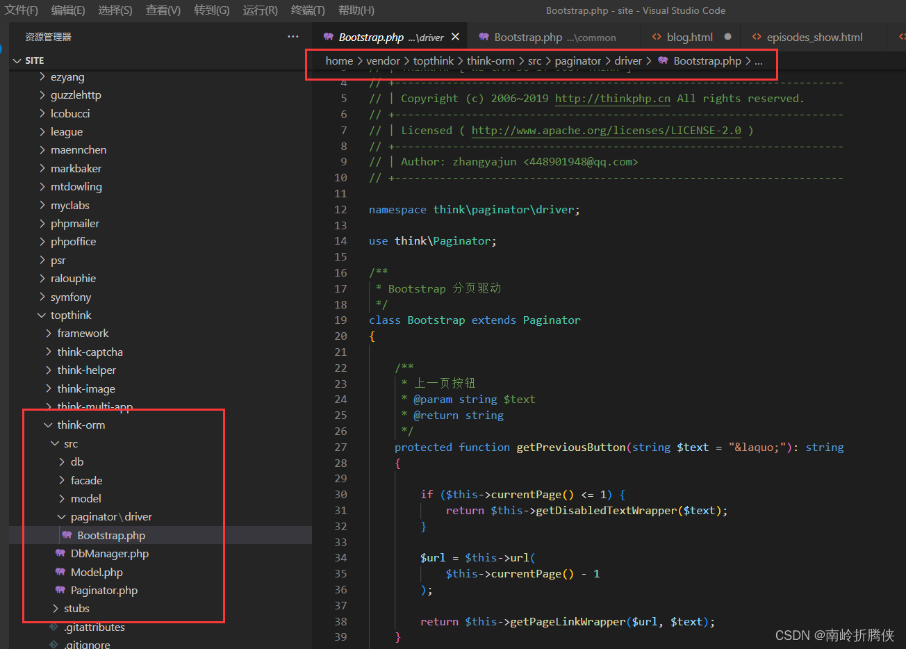 tp6默认的分页设置目录一般位于下图所示的位置。
