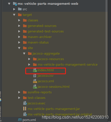实际测试过程中,会在每个子模块中target/site/jacoco-aggregate文件夹下生成index.html,通过浏览器查看该index.html即可直观的看到当前代码测试的覆盖率报告;