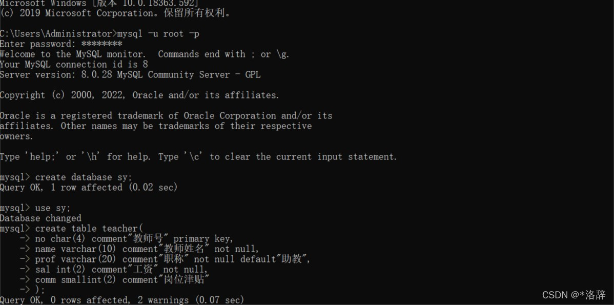 - 教师表 teacher