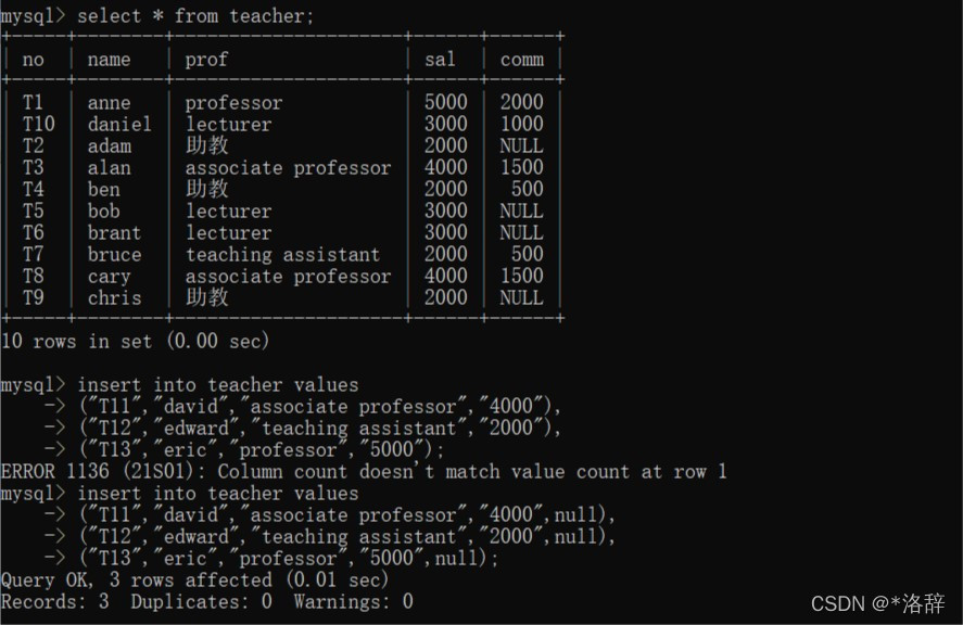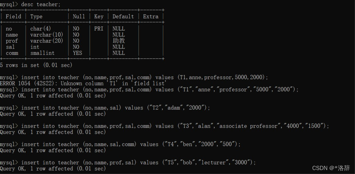 - 指定字段插入数据