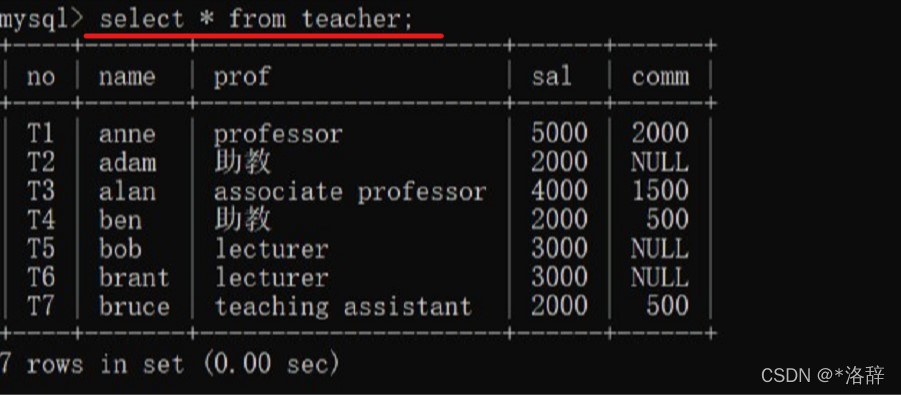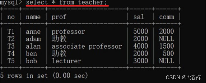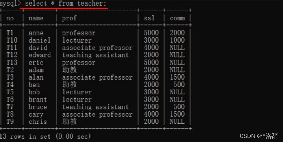 查看教师表所有字段数据