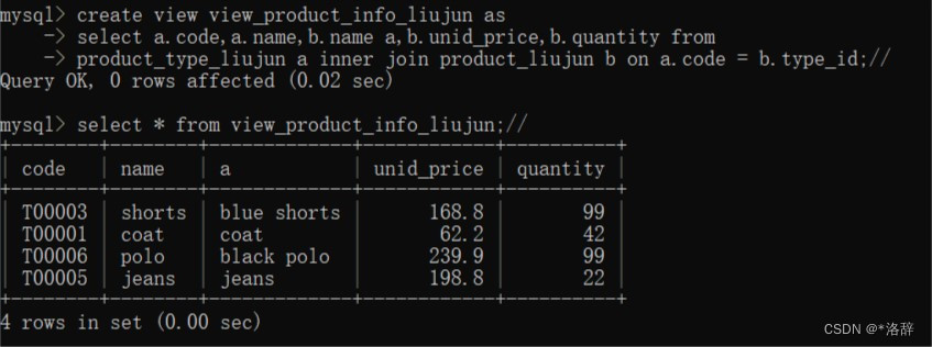 - 创建产品信息视图“view_product_ info_姓名全拼”查看上述内容