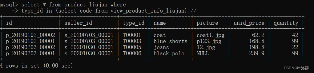 - 查看产品信息视图中已经有过订单销售记录的产品数据(子查询 in)