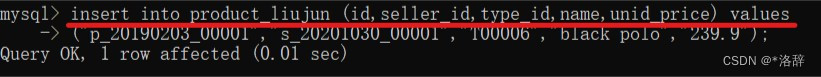 - 创建产品表“product_姓名全拼”,表中字段信息如下: