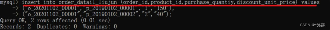 - 修改订单详情表中O_20201102_00002订单P_20190203_00001产品的折后单价为200