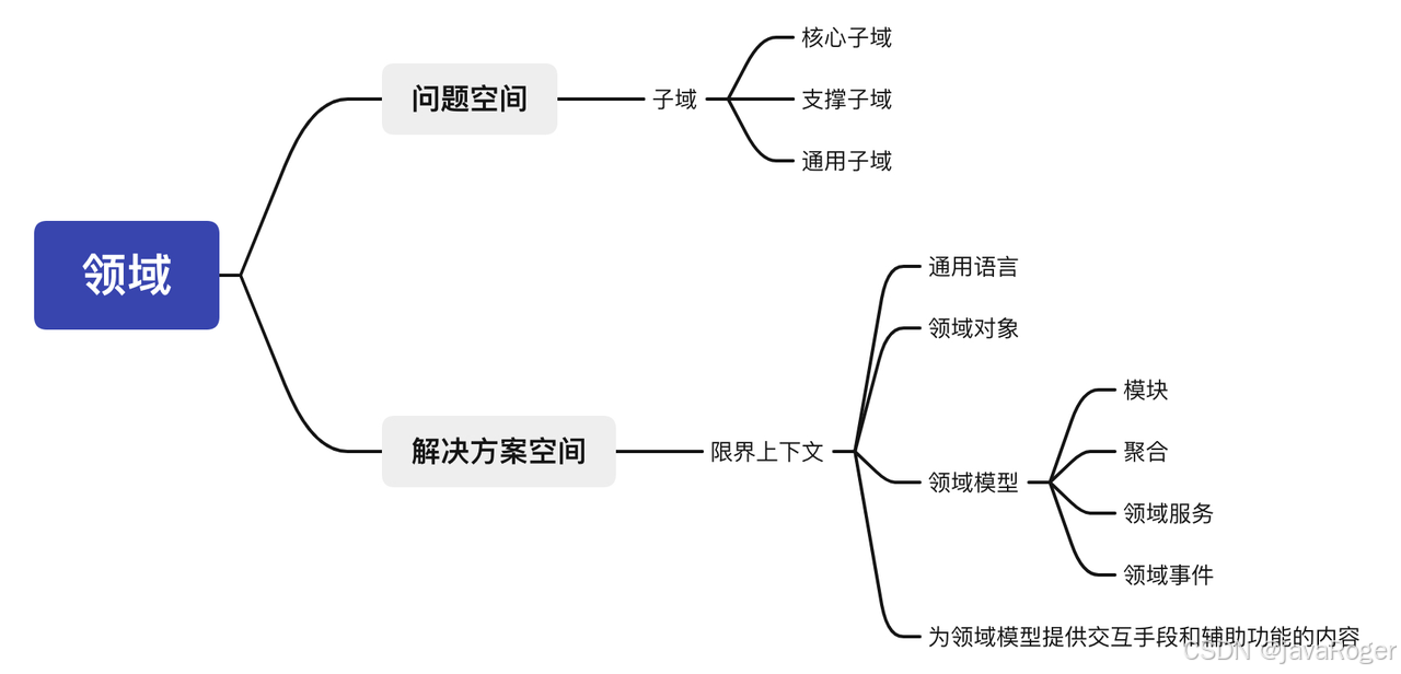 领域:领域(Domain)就是用来确定范围的,范围即边界,DDD 的领域就是这个边界内要解决的业务问题域,一个领域包含多个子域。一个领域通常就是一个项目。