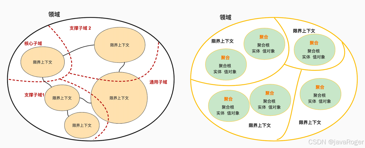 限界上下文:限界上下文是一个语义上的边界,是软件对于问题域的一个特定的、有限的解决方案,用来定义领域的边界,扫清多角色的沟通障碍、统一语言。同时,限界上下文可以用来定义微服务的边界,指导微服务的拆分。一个限界上下文可能被包含在一个子域里,也可能包含多个子域。