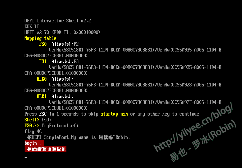 我把之前写的代码,移植到UefiMain为入口的文件中,主要是为了使用Hii的SimpleFont。原来运行正常的代码,却显示乱码了(参照UEFI探索系列18),错误截图如下: