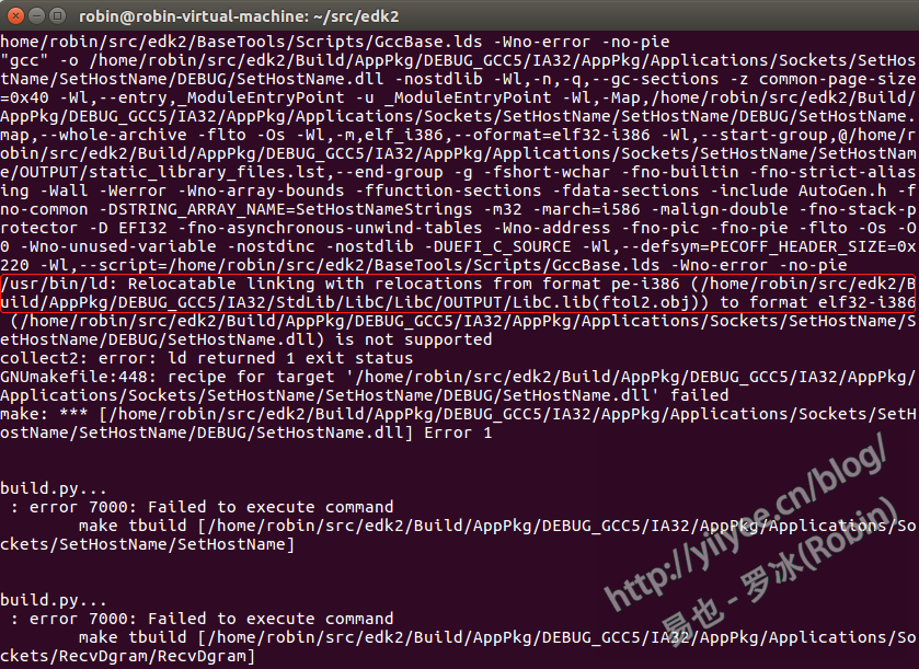 具体的原因在UEFI开发探索系列博客的第38篇中已经描述过了,ftol2.obj导致无法在IA32下编译。