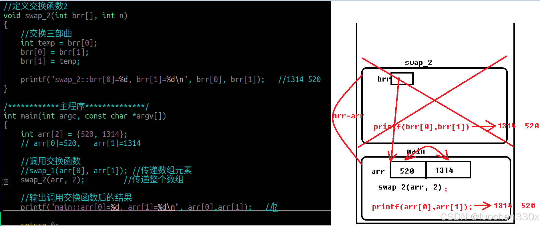 2.由于传递的是整个数组位置,那么被调函数中,找到的是主程序中该数组的位置
