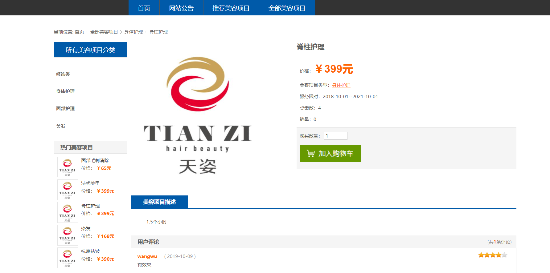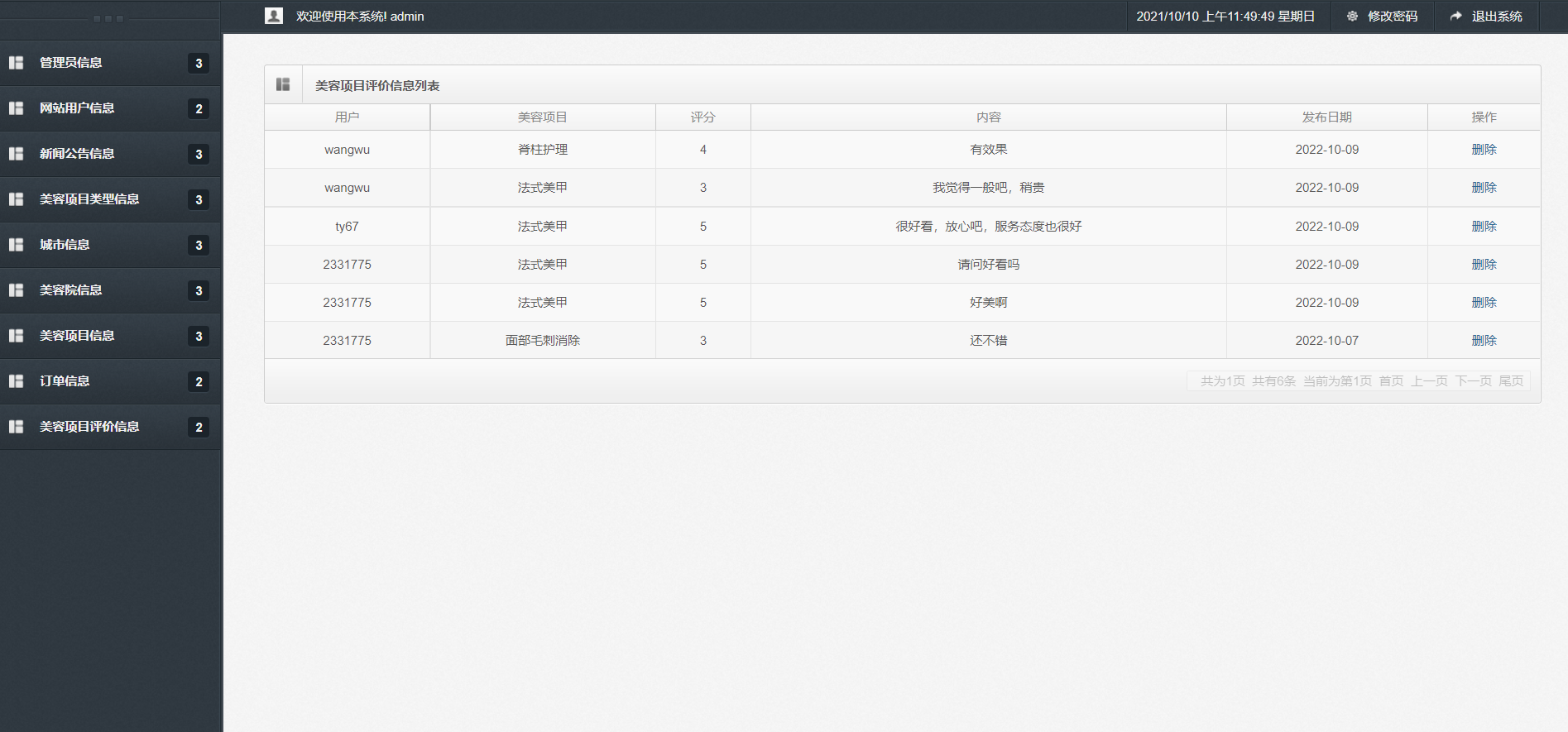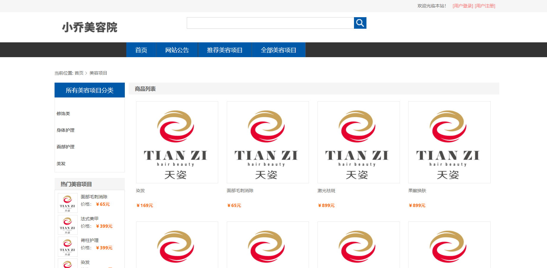 美容院信息列表,美容项目信息查询,订单信息查询,美容项目评价信息列表等功能。