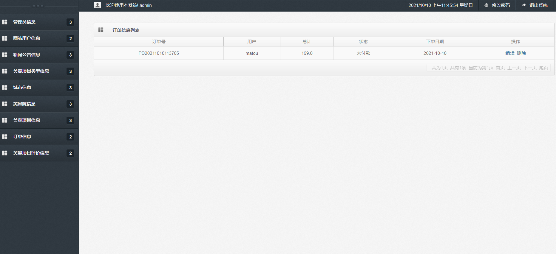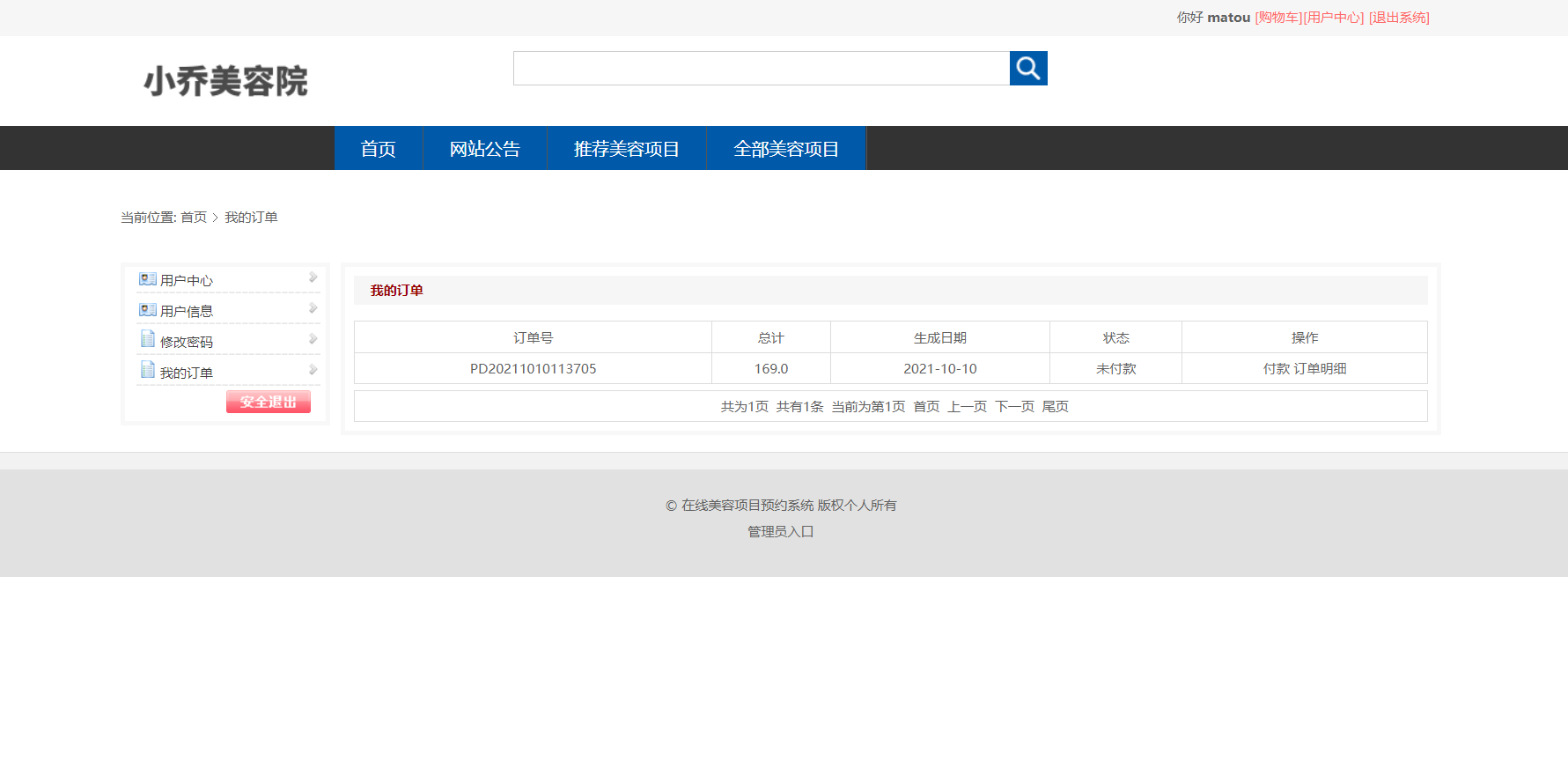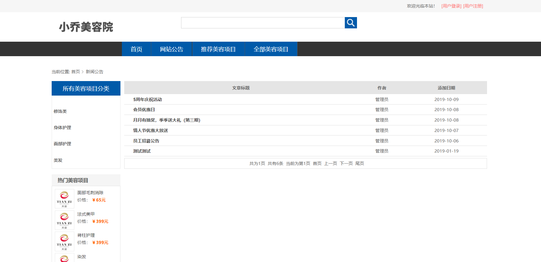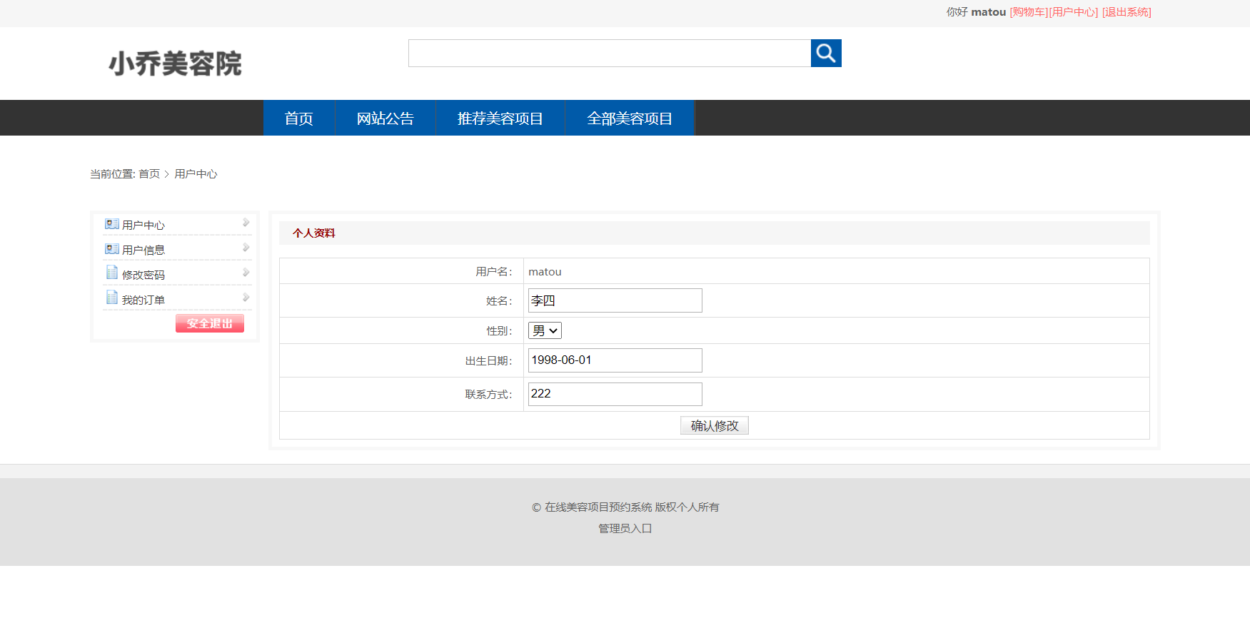 美容院信息列表,美容项目信息查询,订单信息查询,美容项目评价信息列表等功能。