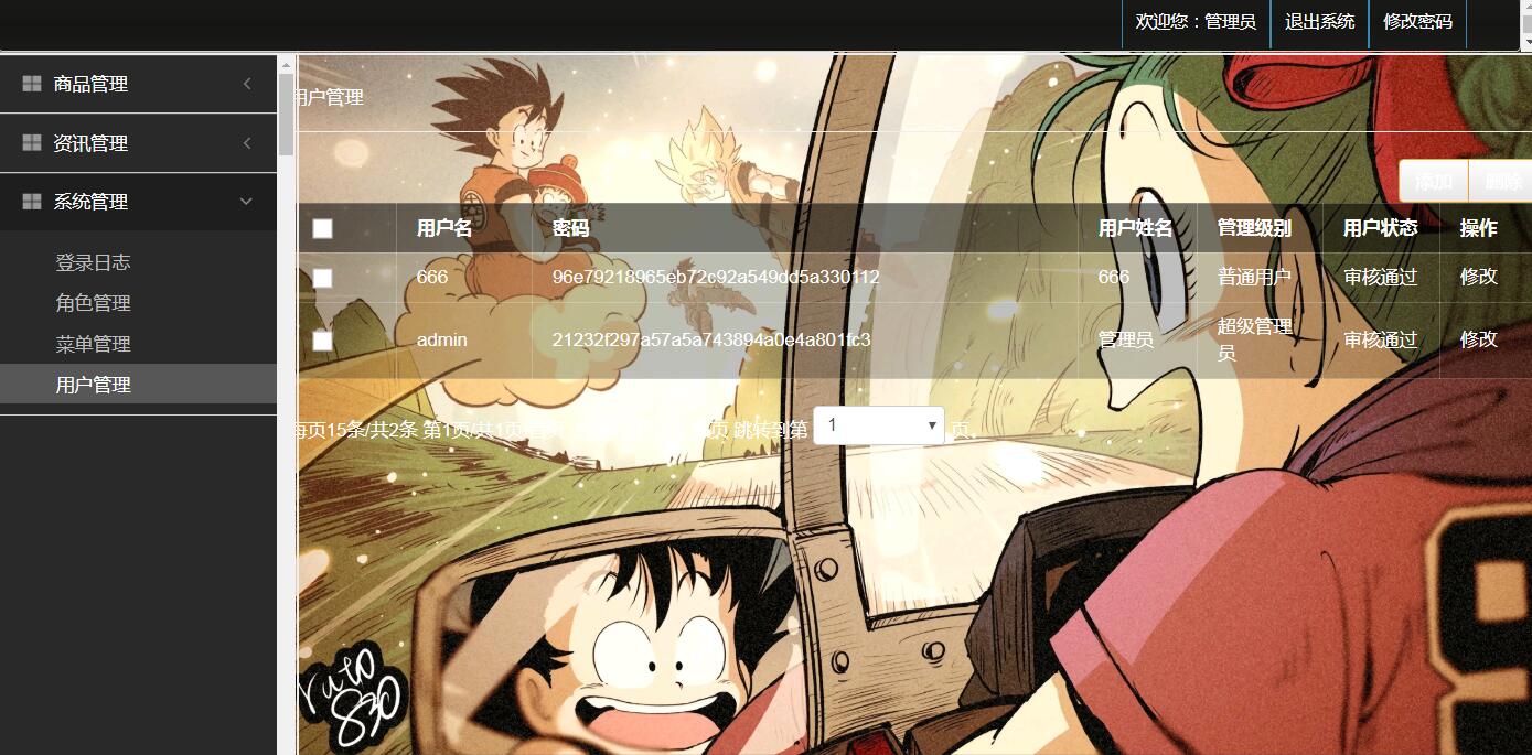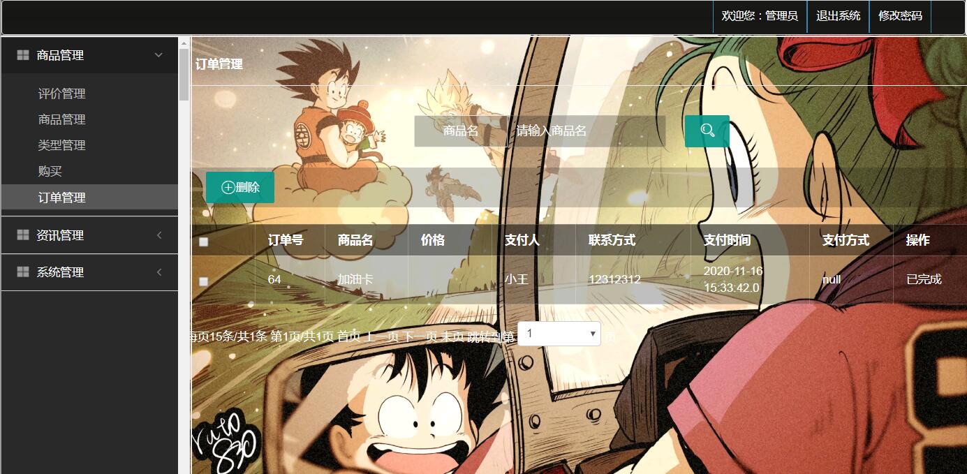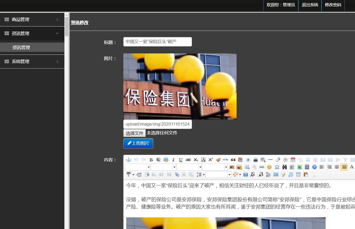 后台管理:登录、注册、商品的增删改查、类型的增删改查、后台购买保险、订单的查询删除、资讯的增删改查 用户的添加删除修改、角色的添加删除修改、菜单的添加删除修改。